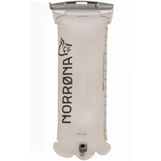 La vejiga está hecha de silicona TPU transparente y duradera y es 100% libre de BPA y PVC. Hay un logotipo de Norrøna en la parte delantera.