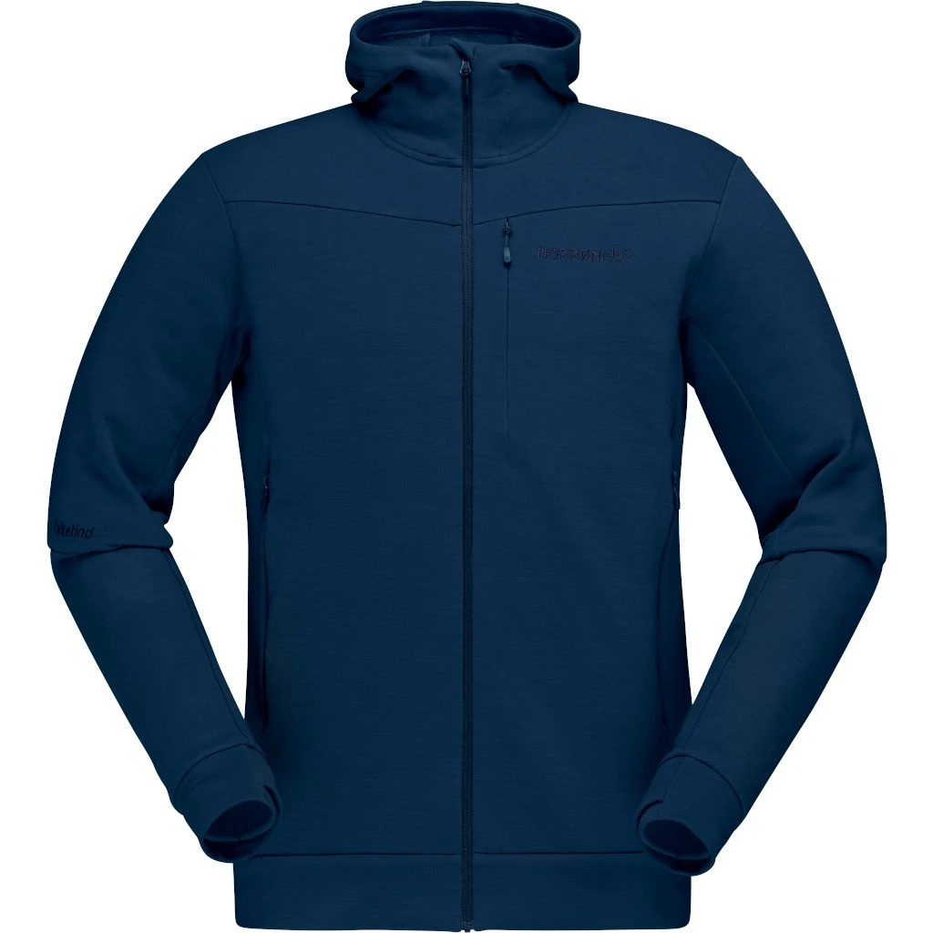 Características de la chaqueta de capa intermedia Norrona falketind warmwool2 stretch Zip Hood para hombre