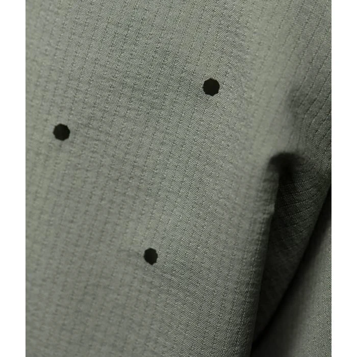 Un tejido técnico superligero y muy transpirable, el aero™100 pesa aproximadamente 30 gramos/m². Es suave, repelente al agua y al viento, pero con un tejido ligeramente permeable para favorecer el transporte de humedad y vapor de agua durante las actividades aeróbicas. La textura de falsa torsión reduce la adherencia del tejido.