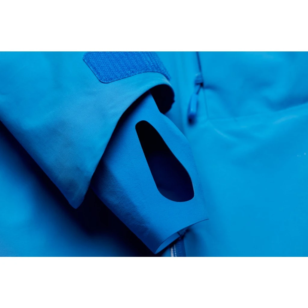 Se ha omitido el aislamiento en la capucha y bajo el faldón para la nieve, pero se ha mantenido en el cuello para mayor comodidad. La ventilación de las axilas garantiza una ventilación óptima al subir a las fantásticas pendientes de nieve profunda.