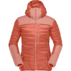 Norrona Plumífero Chaqueta Mujer – Falketind Down750 Hood – Orange Alert/Peach Amber